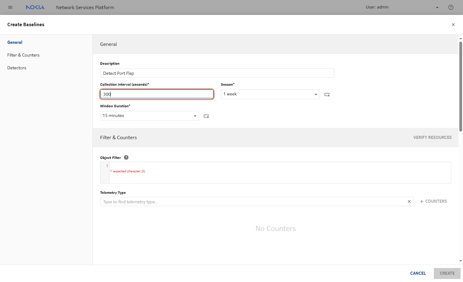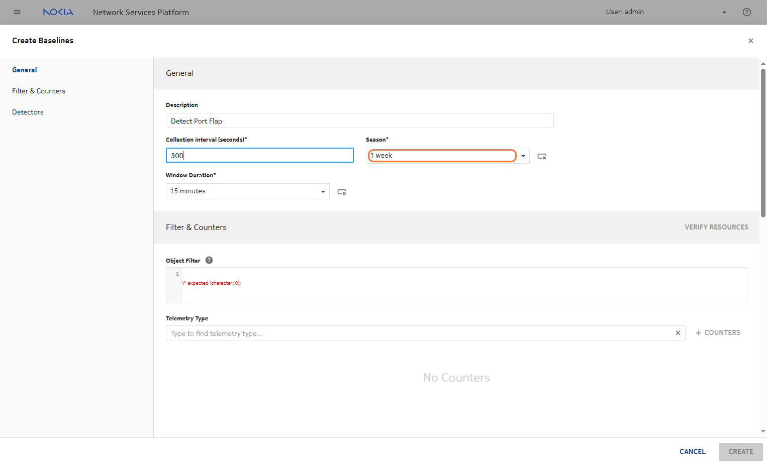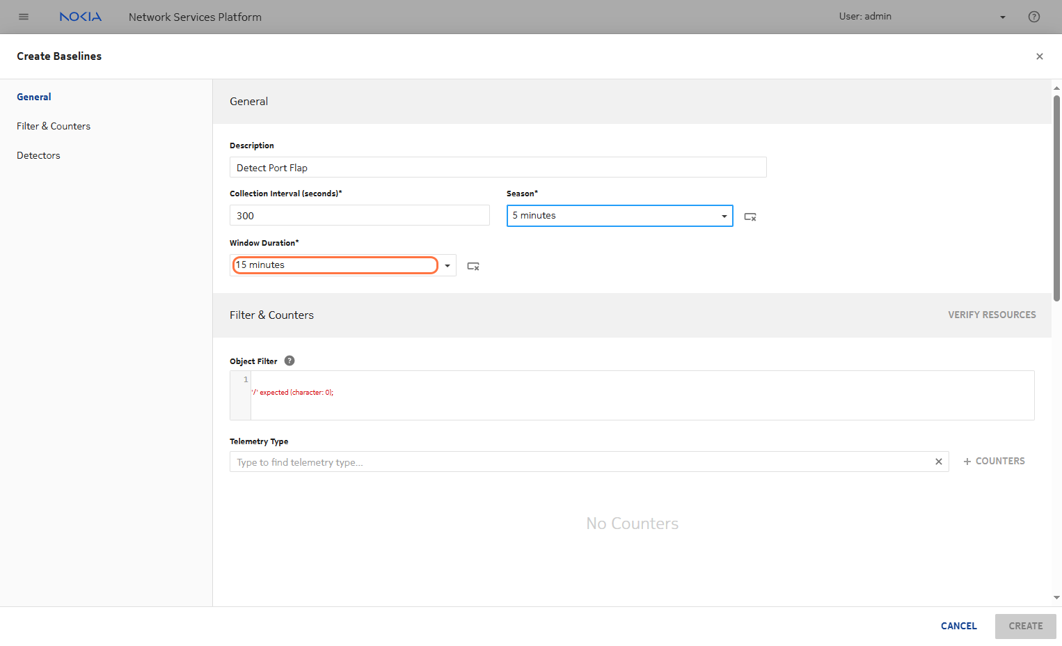 Based on the seasonality and window length, the detector rule will begin to apply. You need to configure the comparator to detect values less than a threshold close to 0. This helps identify anomalies such as port flapping, where there is a sudden drop in the metric value toward zero.