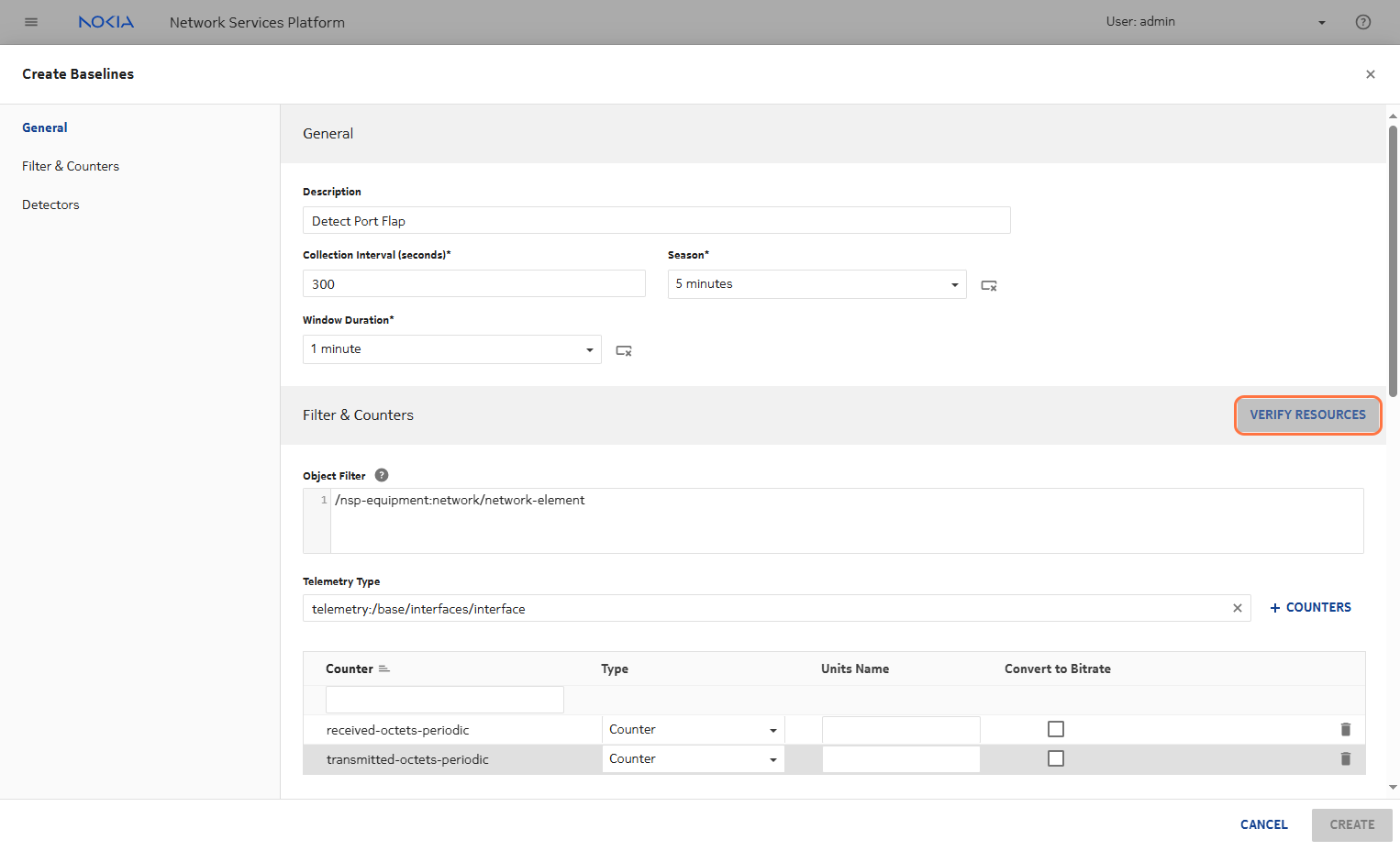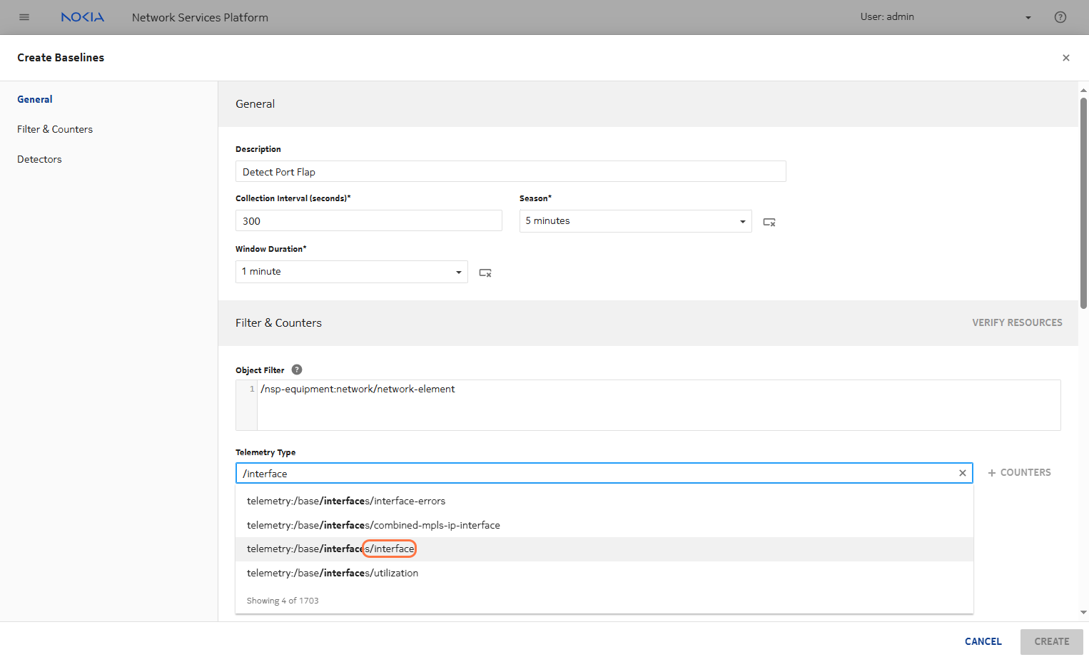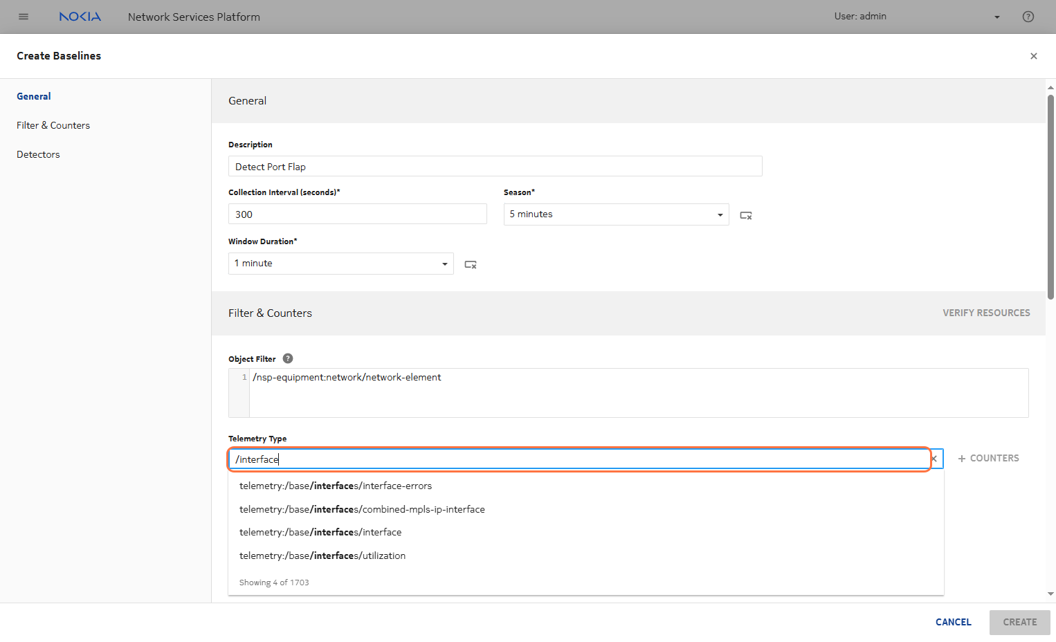 Select which resources to monitor using a filter path. Example: Filter for ports with traffic, specific interfaces, or NE-IDs. -