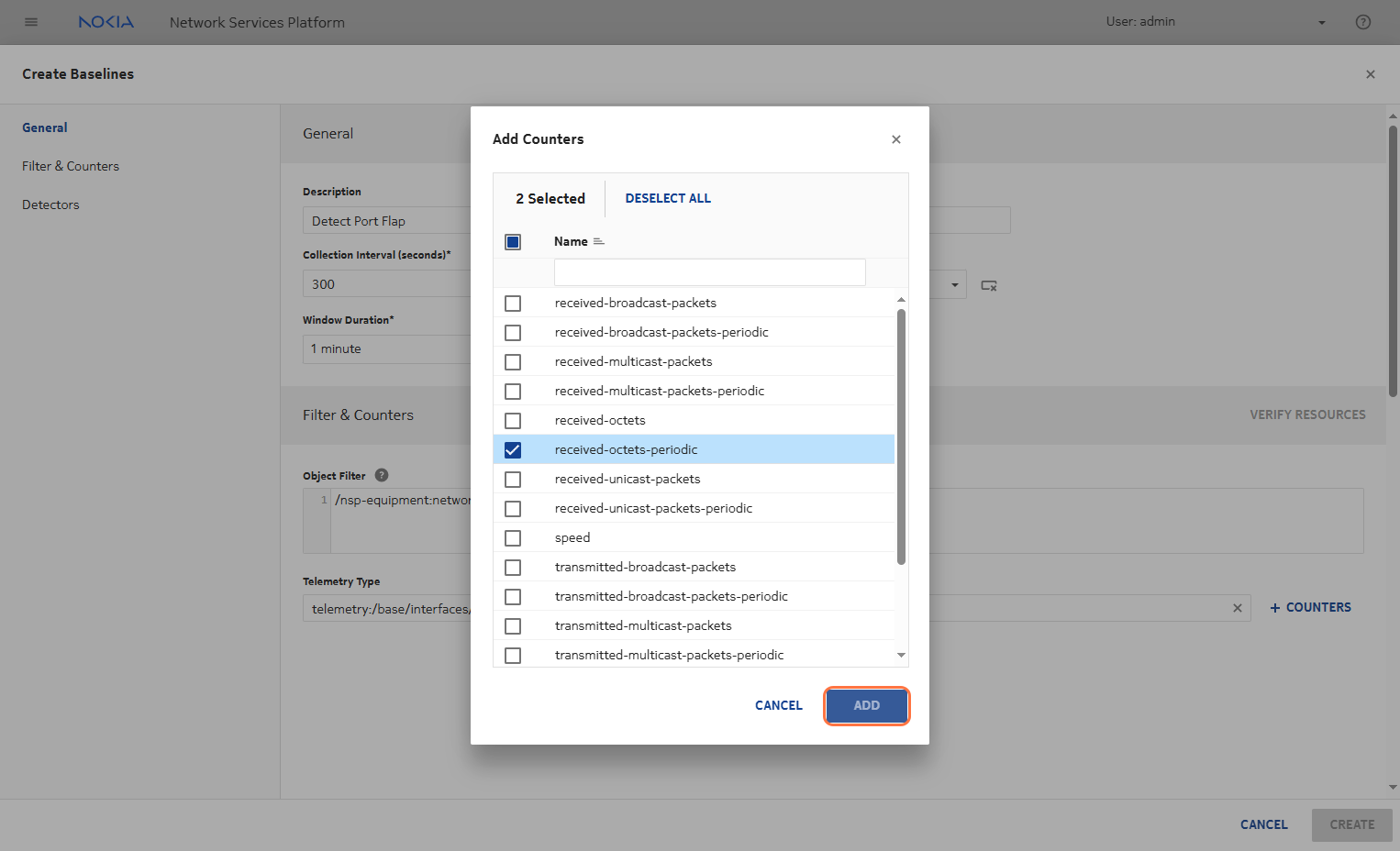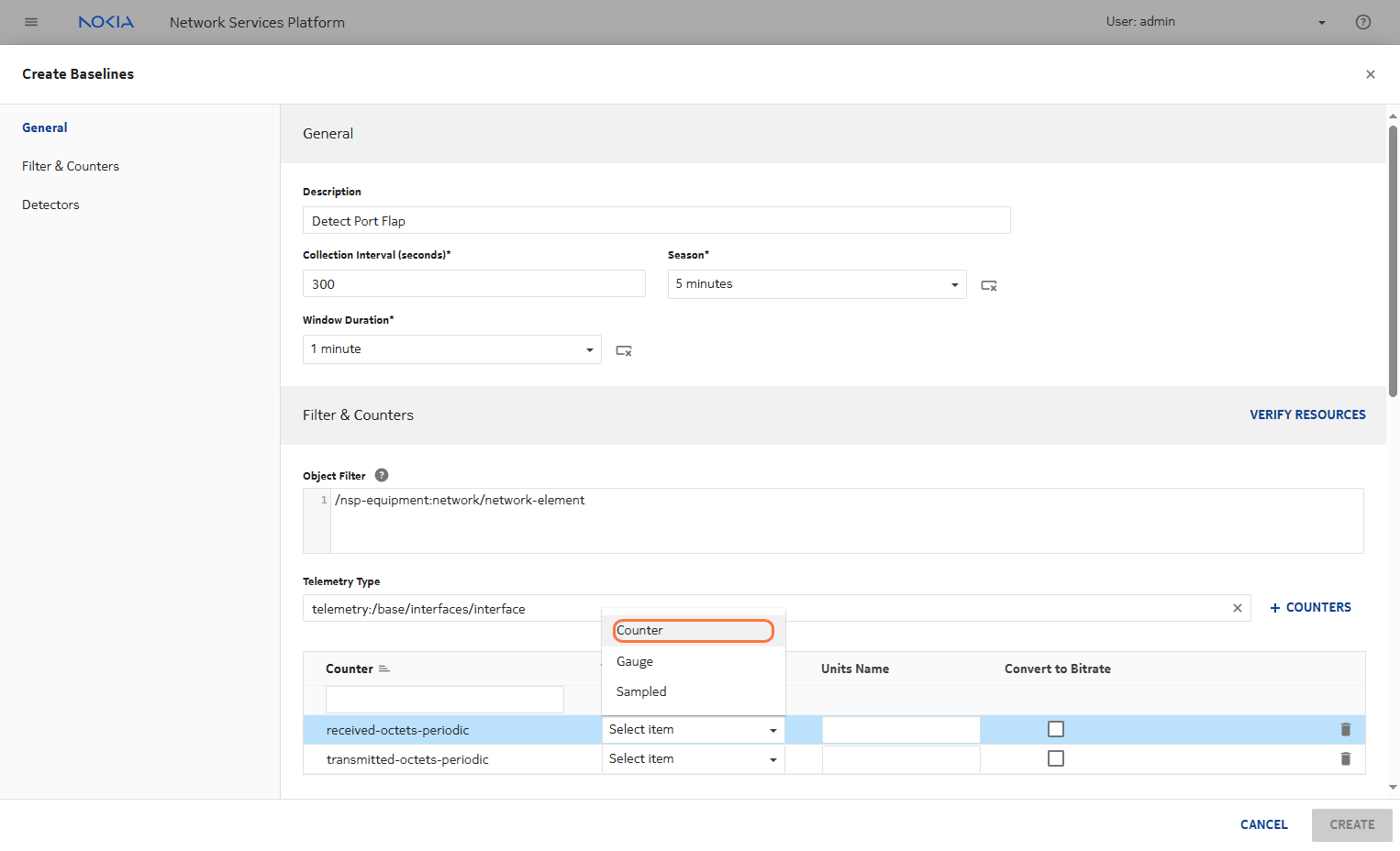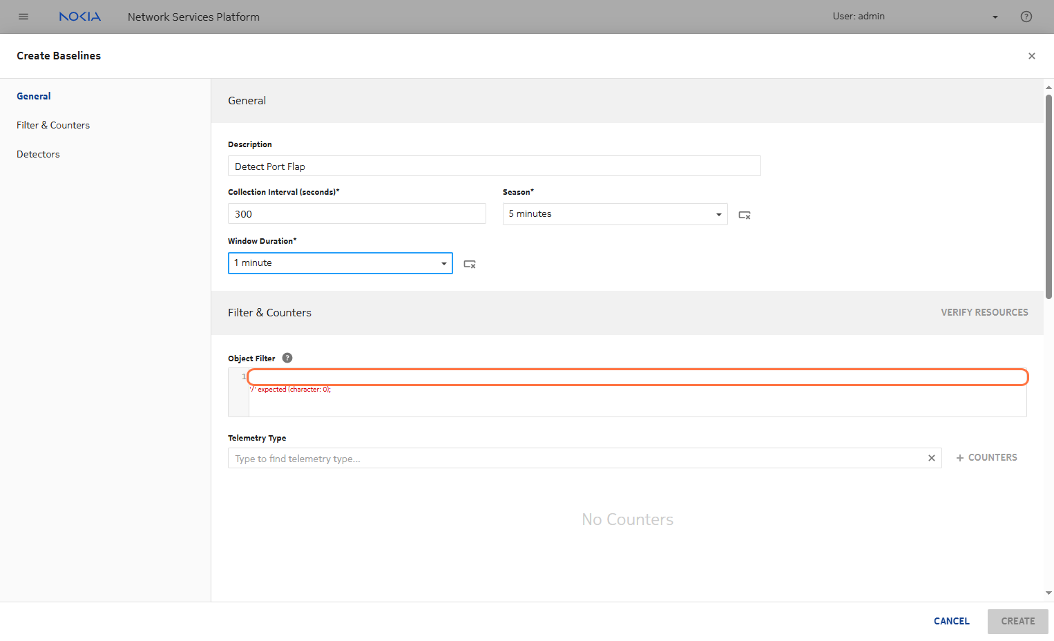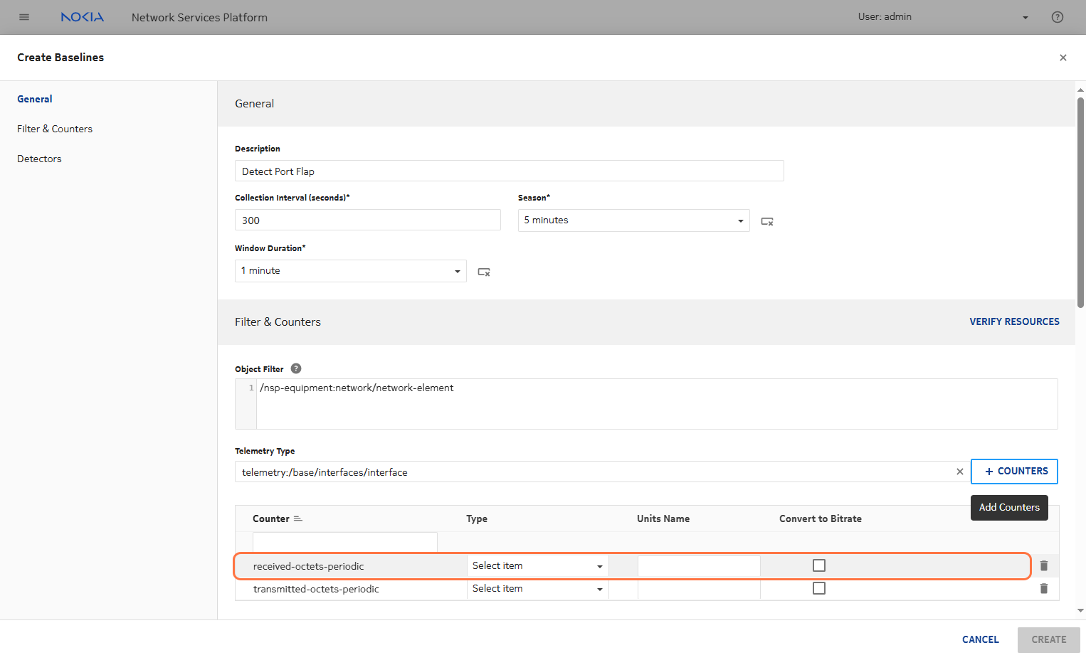 Select which resources to monitor using a filter path. Example: Filter for ports with traffic, specific interfaces, or NE-IDs. -